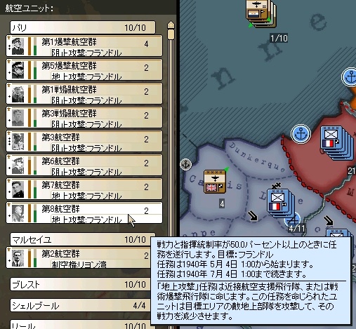 空軍も出動開始。ひたすら地上攻撃で敵の指揮値を削りにかかる。