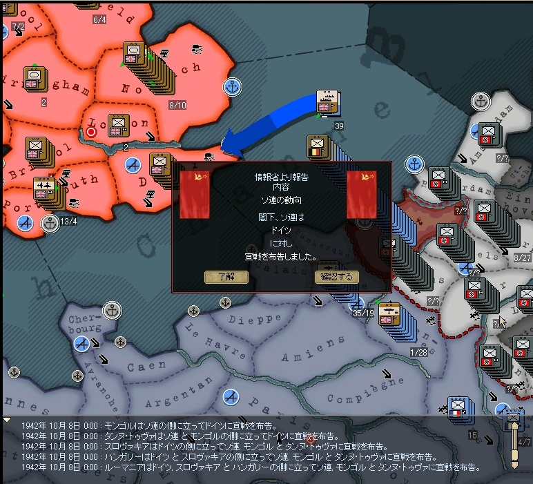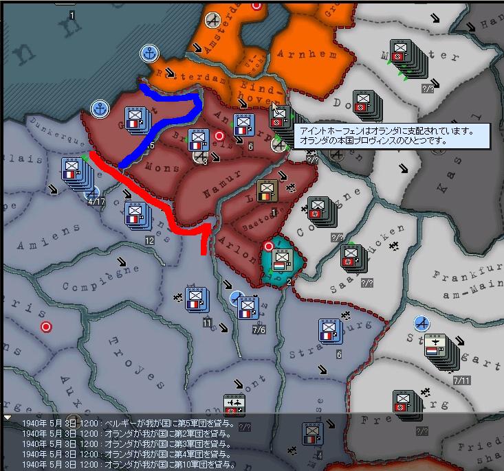画面の通り、ベルギー・オランダが兵力を貸し出してくるので数が一気に増えます。