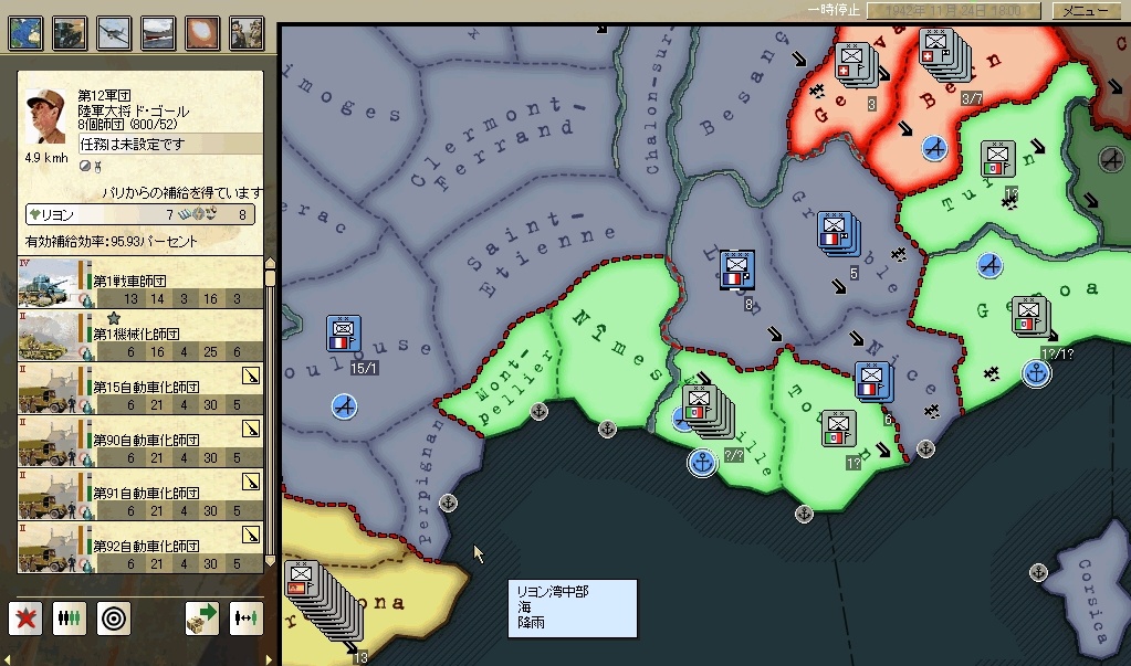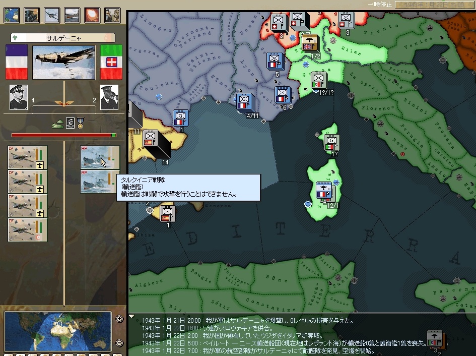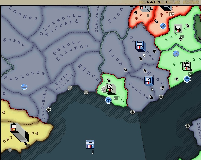 あ、アフリカは放棄したのでどんどん占領されていってます^^;コルシカ島もいつの間にか落ちてた。