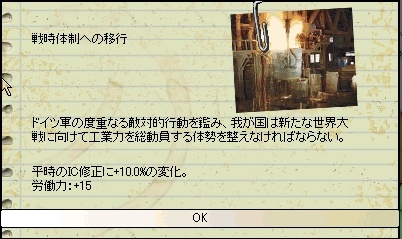 さて、ゲーム開始時に痛いのが国力が抑えられていること(平時補正マイナス50%!)