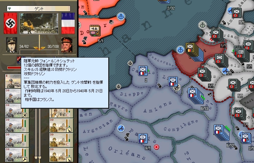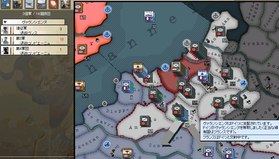 フランス防衛での定石らしいのですが、ベルギー領ゲント州に主力を移動させて「ひたすら耐える」のは一応うまくいきました。
